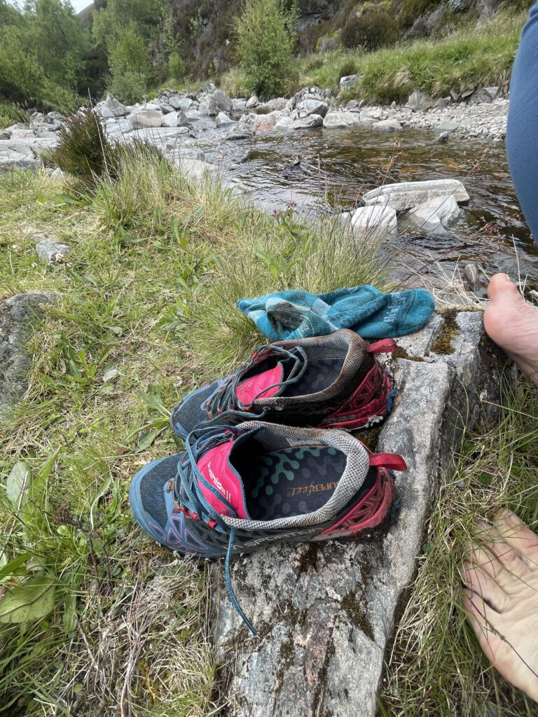 Another gear triumph, were the La Sportiva Bushido 2 trail runners. First time taking trail runners on a long trek and not hiking goretex shoes. Now, considering that trail runners carry almost nothing on their backs, and I had about 20kg all the way through the shoes did ok. They were light, grippy, and dried relatively quickly, either overnight or while wearing them (with trail running socks) I prefer them now to waterproof shoes. Paired with sealskin socks on very wet days or long boggy stretches, they were no fuzz at all.