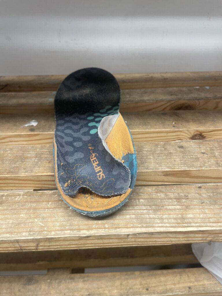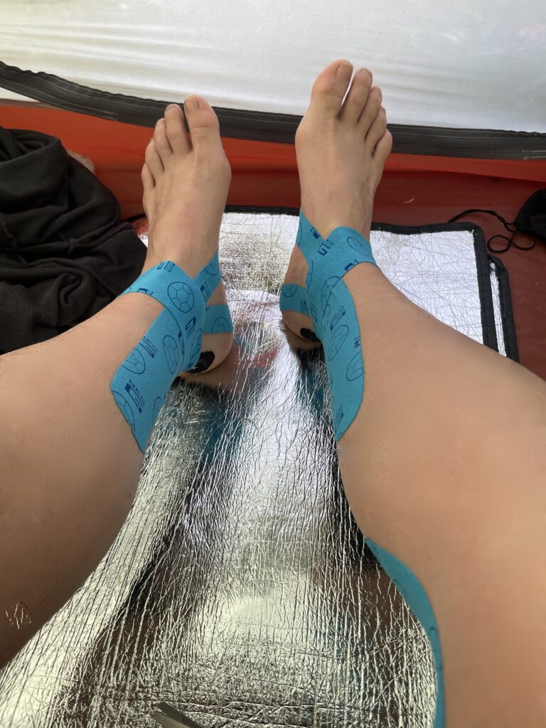 However, I had extremely painful calves & ankles the last week. I had bought a pair of medium arc insoles, a recommendation from the shop. The Superfeet Active Cushion Medium Arch Insoles, for £30 (😥)that should last about a year or 500 miles, and they were worthless just after I hit 100 miles. The result was an incredible amount of ankle pain, calf cramps, and tender knees before I hit day 5. I didn’t realise that the insoles were the culprit for some days and marched on with all the pain untreated. By day 8, I was taping the aquiles tendon, and by day 10, the whole ankle. Got cuddos from my sports masseur for the effective KT taping, inspired by tapping Eli’s ankles when he plays basketball.